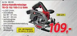 | Akku-Handkreissäge TE-CS 18/165-2 Li Solo | Zgonc | € 109,00 | 01 Jänner 2026 | 26 Jänner 2026 | |||