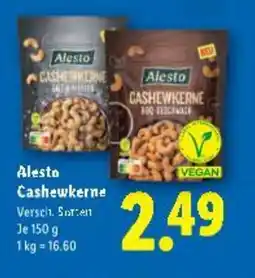 | Alesto Cashewkerne geröstet & gesalzen 250 g | Lidl | € 2,79 | 30 Oktober 2025 | 05 November 2025 | |||