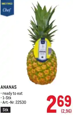 | Ananas, Preisangabe ohne MwSt. (Preis inkl. MwSt. 2,96 €), METRO 1 stk. | Metro | € 2,69 | 22 Jänner 2026 | 04 Februar 2026 | |||
