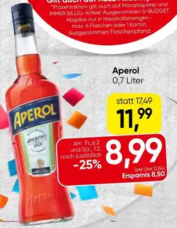 | 1 | Aperol 0,7 Liter | Spar | € 11,99 | 05 Februar 2026 | 11 Februar 2026 | Angebot ansehen | |||