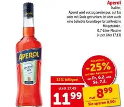 | Aperol Aperitivo 0,7 l | ADEG | € 17,49 | € 9,99 | € 7,50 Rabatt | 15 Jänner 2026 | 22 Jänner 2026 | |