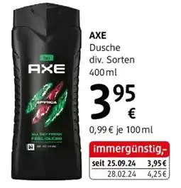 | Axe Duschgel Africa 250 ml | dm | € 2,85 | 26 Juni 2025 | 30 Juli 2025 | |||