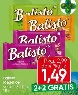| Balisto Riegel 6er 111 g 2+2 GRATIS | Spar | € 1,49 | 2+2 GRATIS | 26 Februar 2026 | 11 März 2026 | ||