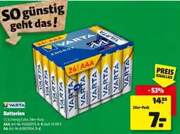| Varta Energy Batterien Big Box Mignon oder Micro MPREIS 24 Stk | MPreis | € 16,99 | € 8,49 | -50% billiger | 29 Jänner 2026 | 04 Februar 2026 |