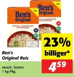 | 1 | Ben's Original Reis 1 kg | Nah&Frisch | € 4,59 | 23% billiger* | 28 Jänner 2026 | 03 Februar 2026 | Angebot ansehen | ||