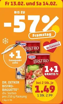 | Dr. Oetker Bistro Baguette verschiedene Sorten MPREIS 250 g | MPreis | € 2,00 | 01 Jänner 2026 | 07 Jänner 2026 |