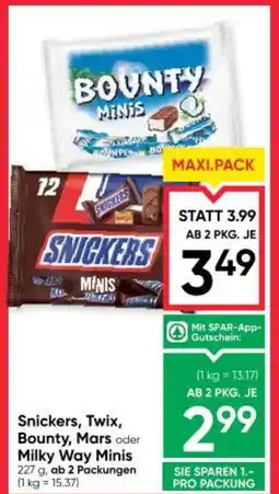 | Snickers, Twix, Bounty oder Milky Way Minis | Spar | € 3,49 | 15 Jänner 2026 | 28 Jänner 2026 | |||