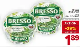 | Bresso div. Sorten 150 g | Billa | € 2,49 | € 1,89 | € 0,60 Rabatt | 29 August 2024 | 04 September 2024 | |