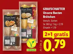 | Grfschafter unsere besten brotchen 2+1 gratis | Lidl | € 1,19 | € 0,79 | 2+1 gratis | 16 April 2026 | 22 April 2026 | |