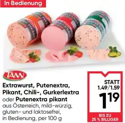 | Extrawurst, Putenextra, Pikant, Chili-, Gurkerlextra oder Putenextra pikant Maximarkt 100 g | Maximarkt | € 1,59 | € 1,19 | € 0,40 Rabatt | 11 Dezember 2025 | 08 Dezember 2025 | |