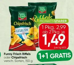 | Funny frisch chipsfrisch oder riffels 150 g 2+1 gratis! | Sutterlüty | € 2,99 | € 1,99 | € 1,00 Rabatt | 09 April 2026 | 15 April 2026 | |