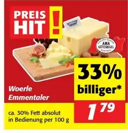 | 1 | Woerle Emmentaler | Nah&Frisch | € 2,67 | € 1,79 | 33% billiger | 15 April 2026 | 21 April 2026 | Angebot ansehen | |