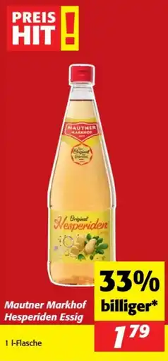 | 2 | Mautner Markhof Hesperiden Essig 1 l | Nah&Frisch | € 1,79 | 33% billiger* | 21 Jänner 2026 | 28 Jänner 2026 | Angebot ansehen | ||