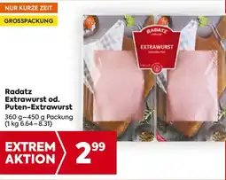| 2 | Radatz Extrawurst od. Puten-Extrawurst | Billa | € 2,99 | 27 Dezember 2025 | 31 Dezember 2025 | Angebot ansehen | |||