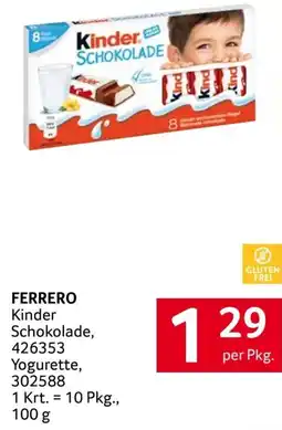 | 1 | Ferrero kinder 100 g | Transgourmet | € 1,29 | 09 März 2026 | 14 März 2026 | Angebot ansehen | |||