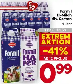 | Formil H-Milch 3,5% 1 l | Billa | € 1,69 | € 0,99 | -41% billiger | 06 März 2025 | 12 März 2025 | |