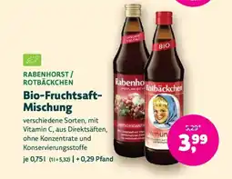 | 4 | Rabenhorst/Rotbäckchen Bio-Fruchtsaft-Mischung verschiedene Sorten Denns BioMarkt 0.75 L | Denn's Biomarkt | € 5,29 | € 3,99 | -25% billiger | 14 Jänner 2026 | 27 Jänner 2026 | Angebot ansehen | |