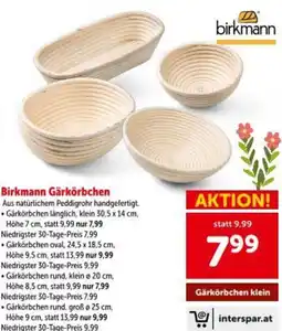 | Birkmann Gärkörbchen | Interspar | € 9,99 | € 7,99 | € 2,00 Rabatt | 22 Jänner 2026 | 28 Jänner 2026 | |