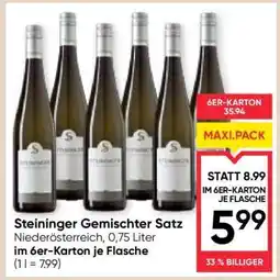 | Steininger Gemischter Satz 0.75 L | Maximarkt | € 5,99 | -25% | 10 Dezember 2025 | 17 Dezember 2025 | ||