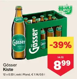 | 1 | Gösser Kiste 12 x 0.33 l | MPreis | € 14,76 | € 8,99 | -39% | 23 April 2026 | 29 April 2026 | Angebot ansehen | |