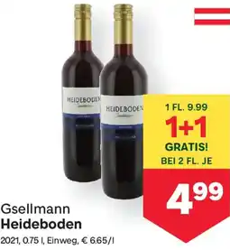 | Gsellmann Heideboden Burgenland, 2021, 750 ml, 1 Fl. + 1 Fl. gratis | MPreis | € 9,99 | 15 Mai 2023 | 21 Mai 2023 |