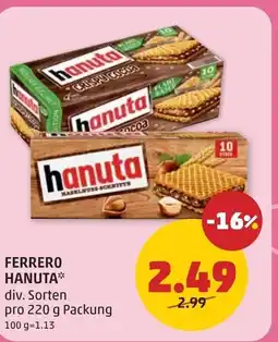 | Ferrero hanuta riegel | PENNY | € 2,89 | € 2,29 | -20% | 09 Oktober 2025 | 15 Oktober 2025 | |