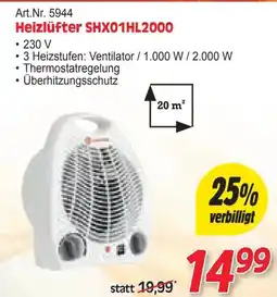 | Art.Nr. 5944 Heizlüfter SHX01HL2000 | Zgonc | € 19,99 | € 14,99 | 25% verbilligt | 01 November 2025 | 29 November 2025 |