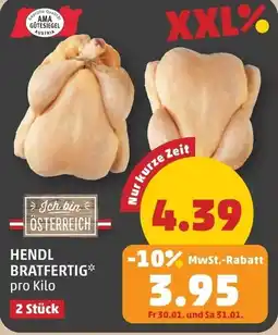 | 2 | Hendl bratfertig | PENNY | € 4,88 | € 4,39 | -10% | 29 Jänner 2026 | 04 Februar 2026 | Angebot ansehen | |