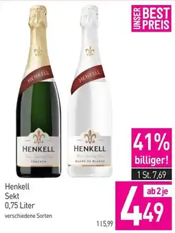 | Henkell Sekt 0.75 Liter | Billa | € 7,61 | € 4,49 | -41% | 19 März 2026 | 25 März 2026 | |