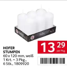| 1 | Hofer stumpen 6 stk. | Transgourmet | € 13,29 | 09 März 2026 | 14 März 2026 | Angebot ansehen | |||