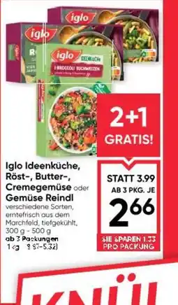 | Iglo ideenküche, röst-, butter-, cremegemüse oder gemüse reindl 2+1 GRATIS! | Maximarkt | € 3,99 | € 2,66 | € 1,33 Rabatt | 09 April 2026 | 15 April 2026 | |