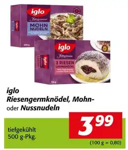 | Iglo riesengermknödel, mohn- oder nussnudeln 500 g | Nah&Frisch | € 3,99 | 01 Februar 2026 | 28 Februar 2026 | |||
