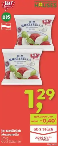 | Ja! Natürlich Bio Mozzarella 125 g | ADEG | € 1,69 | € 1,29 | € 0,40 Rabatt | 27 November 2025 | 03 Dezember 2025 | |