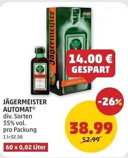 | 2 | Jägermeister automat 60x0.02 l | PENNY | € 52,99 | € 38,99 | -26% | 12 Februar 2026 | 18 Februar 2026 | Angebot ansehen | |