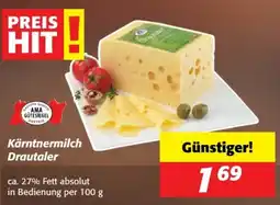 | Kärntnermilch Drautaler 45% F.i.T. 100 g | Unimarkt | € 2,29 | € 1,49 | -34% | 30 Dezember 2025 | 05 Jänner 2026 | |