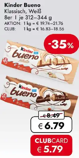 | 5 | Kinder Bueno 3er Classic oder White SPAR 1 pkg | Spar | € 2,79 | € 2,29 | -18% billiger | 09 April 2026 | 22 April 2026 | Angebot ansehen |