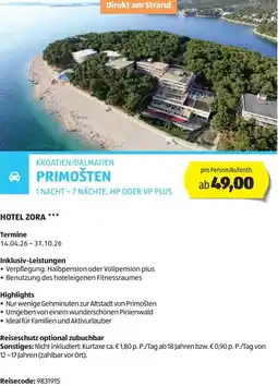 | Kroatien/dalmatien primošten | Hofer Reisen | | € 49,00 | | 01 April 2026 | 28 April 2026 |