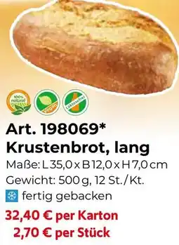 | 4 | Krustenbrot, lang | Eurogast Grissemann | € 2,70 | 09 Februar 2026 | 21 Februar 2026 | Angebot ansehen | |||