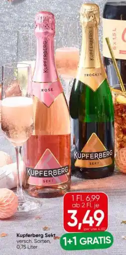 | Kupferberg Sekt verschiedene Sorten MPREIS 0.75 L | MPreis | € 6,98 | € 3,49 | € 3,49 Rabatt | 11 Dezember 2025 | 07 Dezember 2025 | |