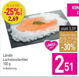 | Ländle Lachsforellenfilet oder Forellenfilet 100 g | Sutterlüty | € 3,59 | 11 Dezember 2025 | 16 Dezember 2025 |
