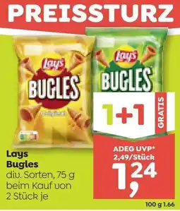 | 1 | Lays bugles 1+1 GRATIS | ADEG | € 2,48 | € 1,24 | 1+1 GRATIS | 30 April 2026 | 07 Mai 2026 | Angebot ansehen | |