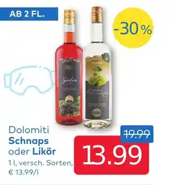 | Dolomiti Schnaps oder Likör 1 l | T&G | € 19,99 | € 13,99 | -30% | 15 Jänner 2026 | 28 Jänner 2026 | |