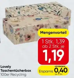 | 4 | Lovely Taschentücherbox 100er Recycling | Spar | € 1,19 | Ersparnis 0,40 | 23 Dezember 2025 | 31 Dezember 2025 | Angebot ansehen | ||