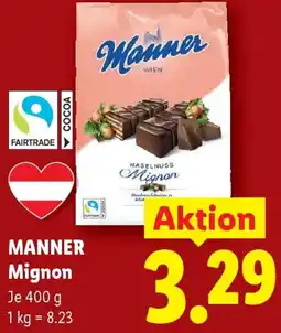 | 1 | Manner Mignon 400 g | Lidl | € 3,29 | 23 April 2026 | 29 April 2026 | Angebot ansehen | |||