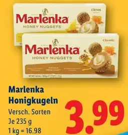 | Marlenka Honig- kugeln 235g | Lidl | € 3,99 | 28 Mai 2024 | 05 Juni 2024 | |||