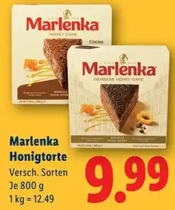 | Marlenka Honigtorte versch. Sorten Lidl 800 Gramm 1 Packung | Lidl | € 9,99 | 12 September 2024 | 18 September 2024 | |||