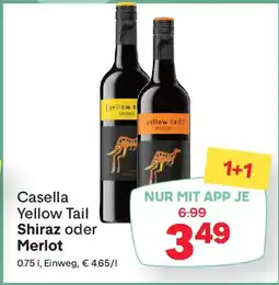 | 4 | Casella Yellow Tail Shiraz oder Merlot MPREIS 0.75 L | MPreis | € 6,99 | € 3,49 | -50% billiger | 09 April 2026 | 22 April 2026 | Angebot ansehen | |