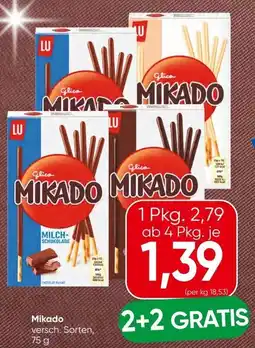 | 2 | Mikado 75 g 2+2 GRATIS | Spar | € 1,39 | 2+2 GRATIS | 18 Dezember 2025 | 31 Dezember 2025 | Angebot ansehen | ||