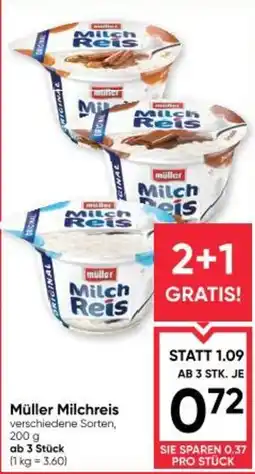 | Müller milchreis 2+1 GRATIS | Billa | € 1,19 | € 0,79 | 2+1 GRATIS | 19 März 2026 | 25 März 2026 | |