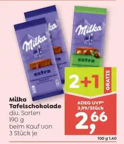 | Milka Tafelschokolade 190 g 2+1 GRATIS | ADEG | € 2,66 | 2+1 GRATIS | 09 Oktober 2025 | 15 Oktober 2025 | ||